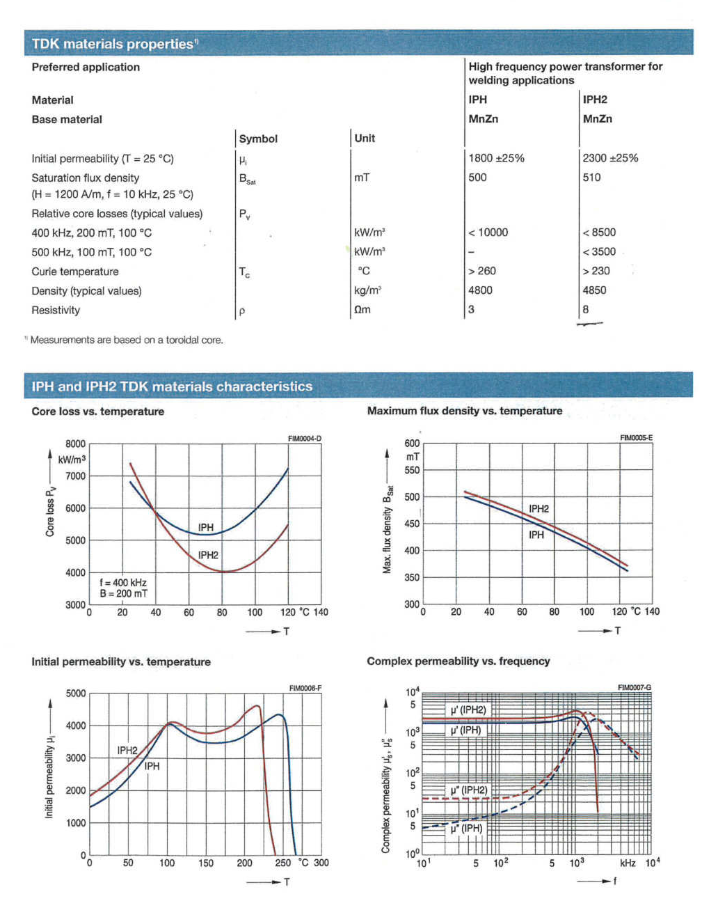 Le caratteristiche e la durata del nucleo di ferrite hanno un effetto fondamentale sull’efficienza e stabilità del processo di saldatura. Grazie alle innovazioni tecnologiche e alle esperienze acquisite nella fabbricazione della qualità IP1 (precedentemente utilizzata da TDK per le impedenze), la successiva qualità IPH (che raddoppia la permeabilità e riesce ad incrementarla), l’ultima qualità IPH2 incrementa di circa il 30% la già alta efficienza IPH promuovendo il  risparmio energetico e un maggiore ciclo di vita del prodotto